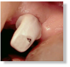Das Provisorium wird intraoral, zementfrei und temporär nur auf das Zirkon- Prep- Cap (oder auch nur auf das Titan-