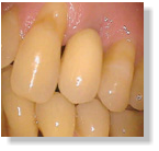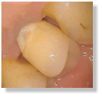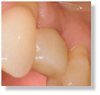 ausgegossen. Die Präparations- Grenze kann somit äußerst hygienefähig auch supragingival (über dem Zahnfleischsaum)